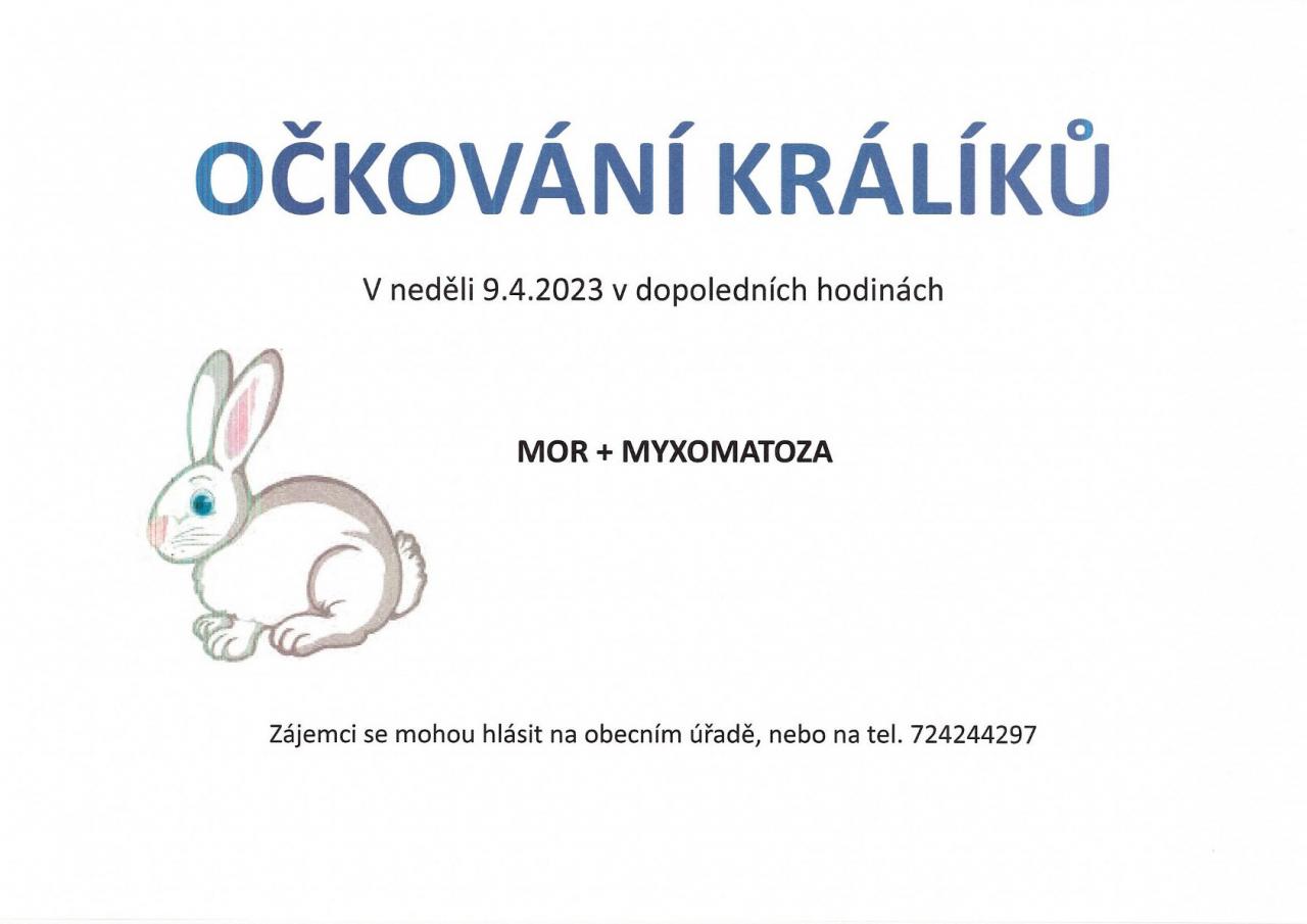 očkování králíků V neděli 9.4.2023 v dopoledních hodinách.
